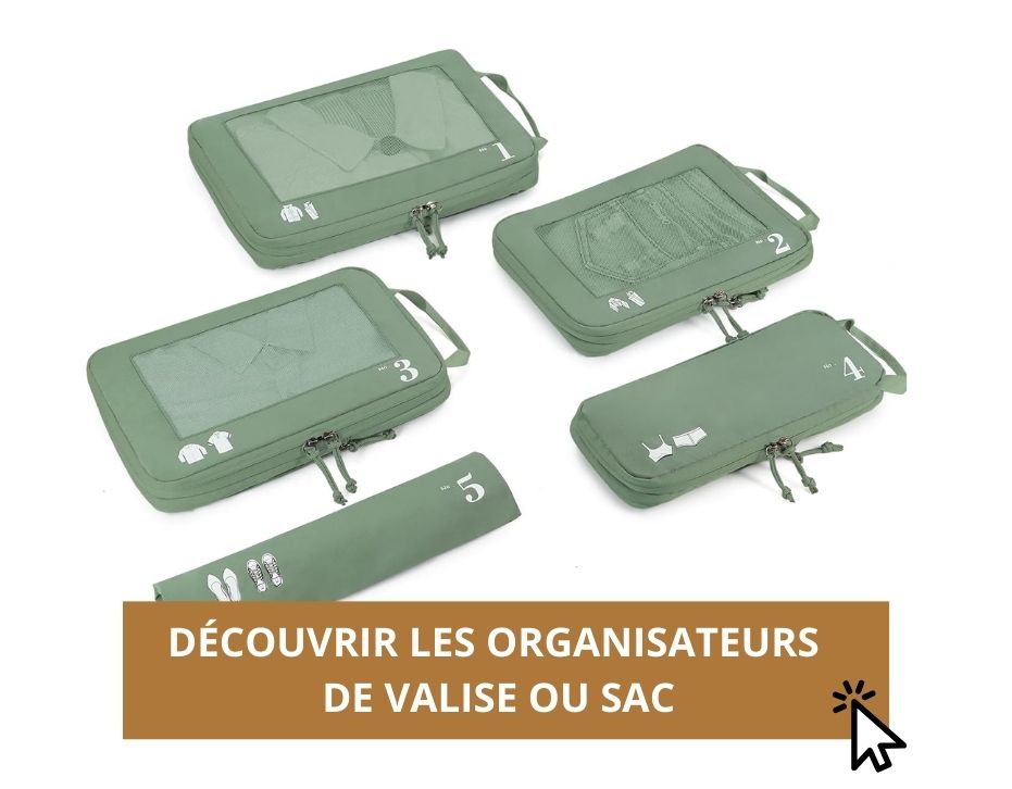 - cubes de rangement légers et qui rétractent les vêtements si vous prenez un petit sac